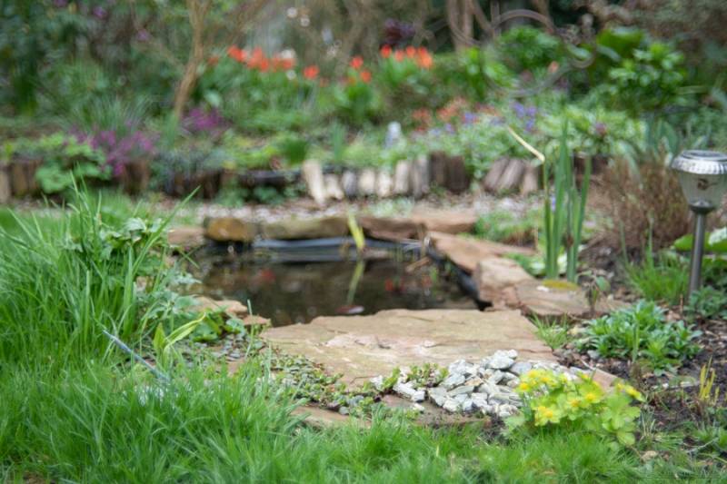 Kałuża zarasta ładnie wokół, budzą się wodne roślinki, bobrek ma malutkie pączki kwiatowe, chyba wysiała się miniaturowa pałka wodna, irysku ładnie przezimowały.