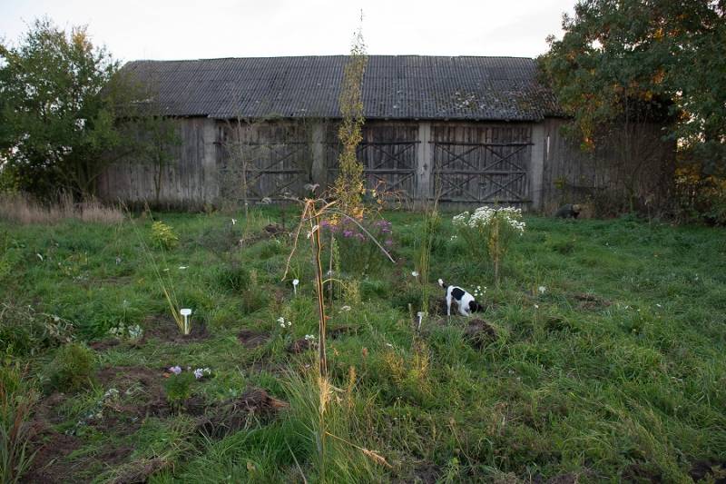 W Biskupinie resztki porządku po wrześniowej wizycie TV. W. ogarnął wowczas narzędzia, ale moich niewymownych i biusthalterów suszących się na trasie już nie...