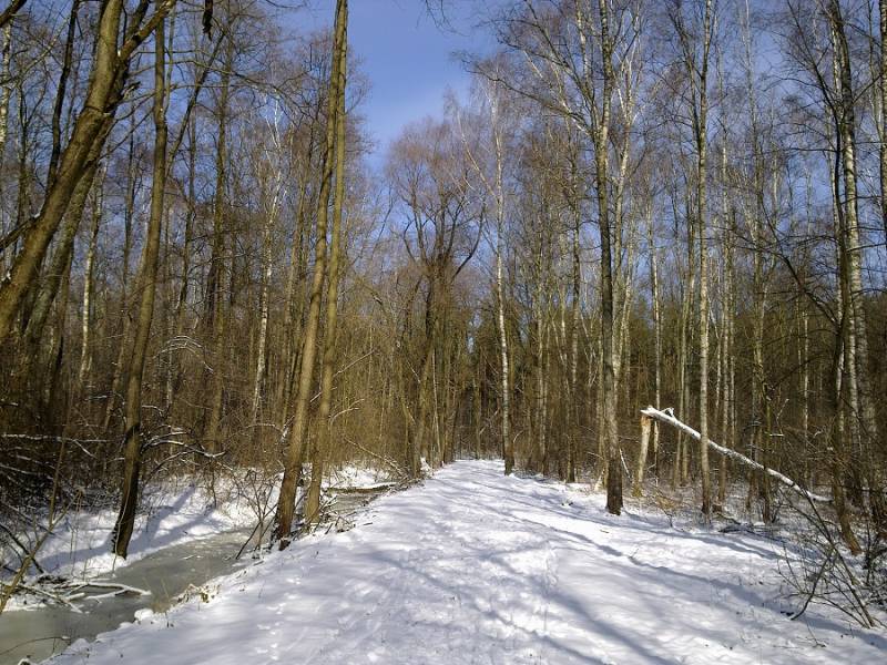 Na Podlasiu Pd. jeszcze wionie zimą, ziemia na kamień skuta. Ale da się sad prześwietlić i wyściółkować część rabat. Zabrał taki ładunek zrębek, że sporo da się zrobić.