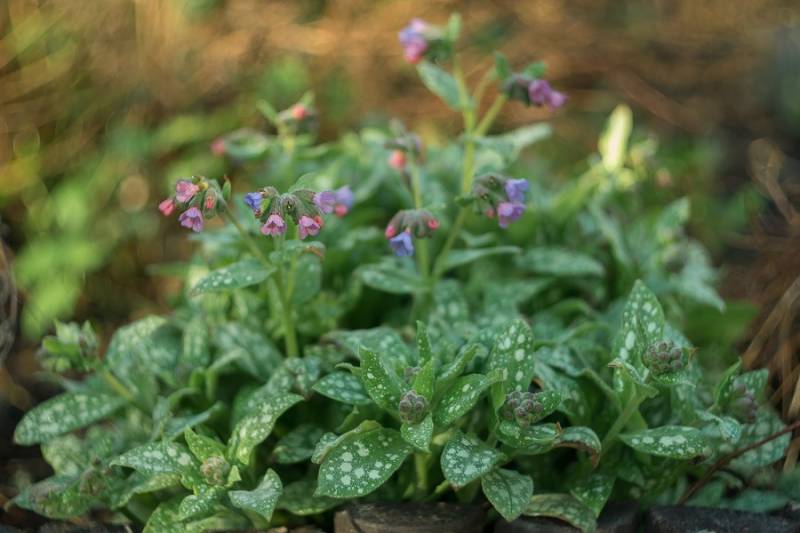 Wczoraj W. przytargał miodunkę odmiany Blue Ensign o niebywale niebieskich kwiatach oraz wilczomlecz, który zdechnie pewnie po pierwszej zimie, ale urzekł go na tyle, ze wbrew rozsądkowi go kupił