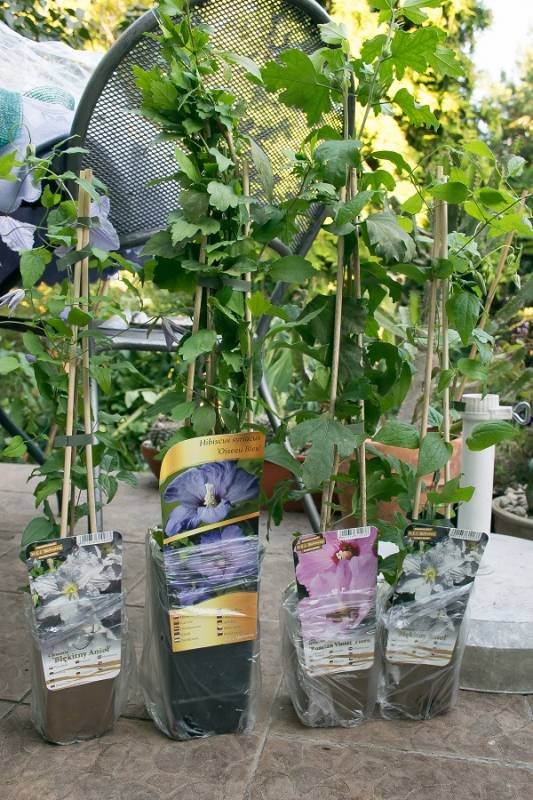 I od Wędrowskich dwa powojniki Błekitny Anioł i dwie ketmie: Blue Bird i Russian Violet