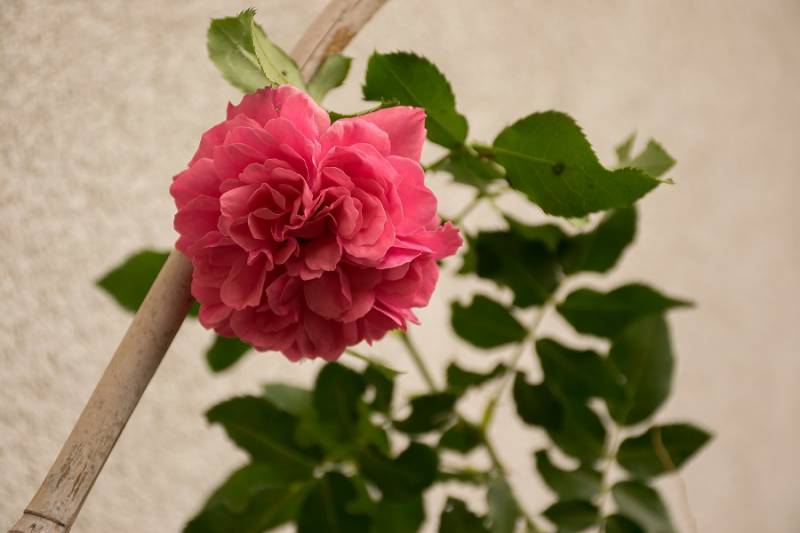 Jedna ketmia poszła na wąską rabatę przy domu, gdzie jest ciepło, slonecznie i zacisznie. Tam tez poszedł, na stara pergolę po winogronach, jeden Błekitny Anioł.