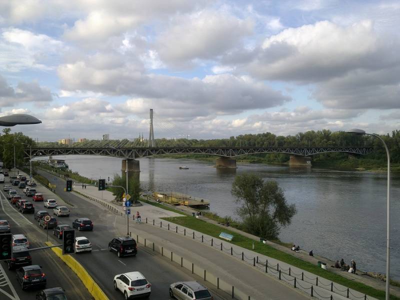 Widok z Mostu Poniatowskiego na Most Średnicowy i dalej Świętokrzyski (z tym wystającym pylonem)