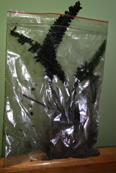 Rozrywam torebki... Ki diabeł? Paprotniki (polystichum) powinny mieć zielone liście... A tu nawet brązowych nie ma!!!