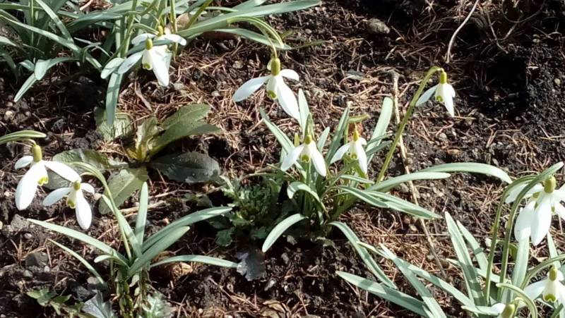 Przebiśniegi maja sie dobrze.Śnieżyczki przyniesione z lasu nie przyjęły sie