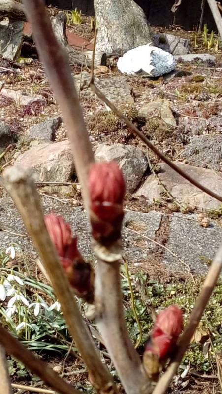 Podobno tatrzańskie misie już się wybudziły ze snu zimowego, pora więc żeby i kudowski niedżwiedż wylazł z gawry.Szybko więc coś skrobnę i lecę ogrodować.W ogrodzie nic nie zrobiłem.Mimo tego, że słoneczko operuje dość intensywnie nie jest za ciepło.Ciągle wieje zimny wiatr, a Mój kręgosłup domaga sie remontu.Jest jedna rzecz, którą zrobiłem,a mianowicie wsadziłem do ziemi drzewko, które robiło za choinkę.Teraz już nie nazywa się choinka tylko świerk.To już chyba piąte drzewko.Trochę wiosny Wam pokażę.Jakoś w tym roku wszystko jest trochę póżniej w porównaniu do ogrodów innych forumowiczów.Trochę Mnie to dziwi, bo ostatnie lata startowałem prawie równo z Wami.W tym roku wszystko wróciło do normy i jest ten dwutygodniowy pośliżg jak to było dawniej.Nawsadzałem jesienią sporo cebulowych , powiększająj rabatkę cebulową.Wydawało mi się, ze powykopywałem z innych części ogrodu wszystkie cebulki.Teraz jak patrzę na to co wyłazi z ziem widzę, ze nie do końca.Na Powiatowej jest pełno różności.W sumie juz nie mogę się doczekać tych kwitnących łanów.Co do Moich zakupów to pierwszą i jedyną dostawą są nasiona z Florexpolu.Kupuje tam od lat i jestem zadowolony.Część nasion jest już wysianych do skrzynek i już zaczęły wschodzić.Trochę nasion kupiłem w Moim ogrodniczym, który jest w tym roku dobrze zaopatrzony.Ze zdziwieniem zobaczyłem tam min. 4 odmiany kosmosów czy też mak"Danish Flag" , który dostałem z FL.W LM kupiłem 3 wiechowate w kapersach.Coś tam jeszcze w Lidlu.Zamówione mam też 10 floksów w większości maluchów z serii Flame.W Jednym ze sklepów internetowych widziałem fajną piwonię drzewiastą "Canary Brillant". Pomyślałem sobie , że będzie towarzystwo dla Mojej królowej i wrzuciłem do koszyka.Przy okazji dwie inne piwonie, dwie dalie i trochę leliji, oraz ismenę i cebulice peruwiańską.Mam nadzieję że nie dostanę jakiegos badziewia.