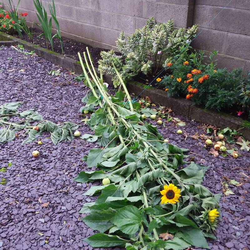 Angielska pogoda Ja już przywykłam. Słoneczników żal. Może pomyśl o jakimś paliku dla nich.