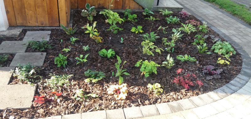 Moniko sama nie mogę się doczekać jak będzie wyglądać ta rabata w przyszłym sezonie. Co do odmian to przyznam się, że nie wiem dokładnie gdzie co posadziłam bo nie robiłam notatek ale mam w sumie wszędzie posadzonych około 60 odmian żurawek i mniej więcej tyle samo host. Niestety ostatnią rabatę mam nieskończoną bo zabrakło mi cieniolubnych, a fundusze na ten rok się skończyły. Mogłabym powsadzać to co mam podwójne ale nie chcę bo nie taki był plan i nie chce w przyszłym roku zaczynać od przesadzania, choć wiem, że pewnie pod koniec sezonu będę musiała poprzesadzać niektóre rośliny bo mogą okazać się za wysokie lub za niskie w miejscu którym rosną.