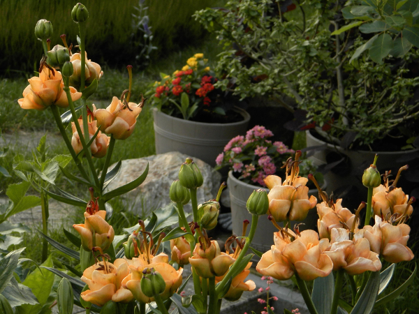 Miłko, myślę że jeszcze mają czas żeby zakwitnąć. Wiele też zależy od tego, jak była traktowana w poprzednim roku i czy bulwa dobrze przyrosła. Trochę jak z tulipanami. Ta ze zdjęcia jest nowa, kupiona wiosną, a żółta którą mam z poprzednich lat dopiero zaczyna. Nic specjalnego z nimi nie robię, sadzę i wykopuję jak dalie, tylko dużo płycej sadzę. Czasem daję jakiegoś nawozu do kwitnących.