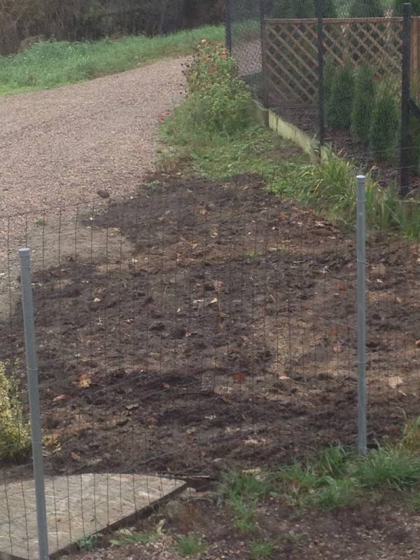 Teren tam nie jest łatwy, bo pod gruzem trafiłam na tak zwartą glinę że nie dało się wbić łopaty. Na reszcie działki nie ma aż takiej skorupy, wydaje mi się że to rozrzucona ziemia spod fundamentów domu sąsiada. Nie udało mi się tego przekopać więc tylko zaspałam warstwą skoszonej trawy wymieszanej z rozdrobnionymi liśćmi. Całość przykryłam kartonem i sporą warstwą kompostu. Zobaczymy na wiosnę czy ten zabieg coś da.