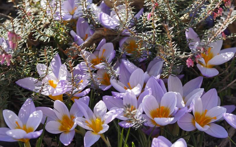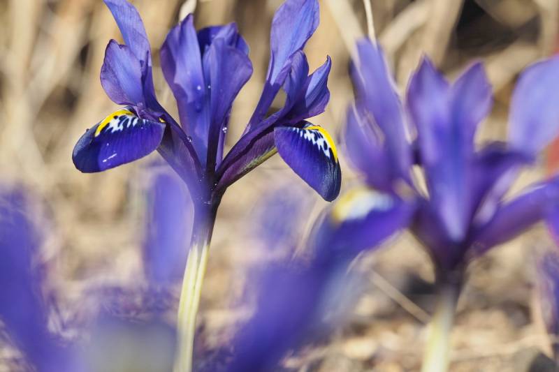 Z każdym dniem w ogrodzie pojawia się coraz więcej koloru. Powoli rozpędzają się wrzośce, ale najbardziej urocze są w tej chwili irysiki cebulowe.