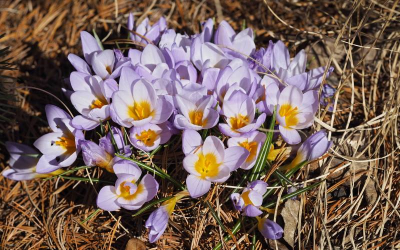 To dzisiaj może trochę większych kwiatków ... kwitną już na całego wczesne, drobne krokusy. Niby są mniejsze od tych późnych ale dla mnie o wiele ładniejsze.