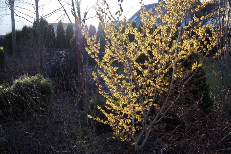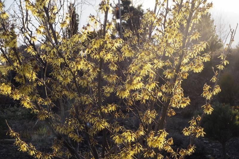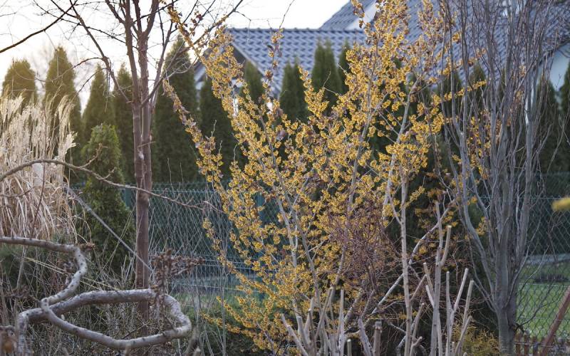 że derenie przetrwały bez uszkodzeń mrozowych. Coraz bardziej doceniam też oczary, które niezawodnie kwitną mimo mroźnej aury.