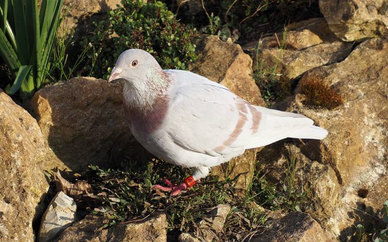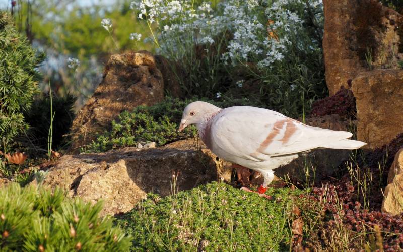 Od kilku dni mieszka u nas gołąb pocztowy, który chyba pomylił drogę do domu. Nie odlatuje tylko chodzi za człowiekiem jak pies i przygląda się pracom ogrodowym.