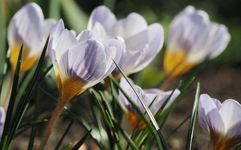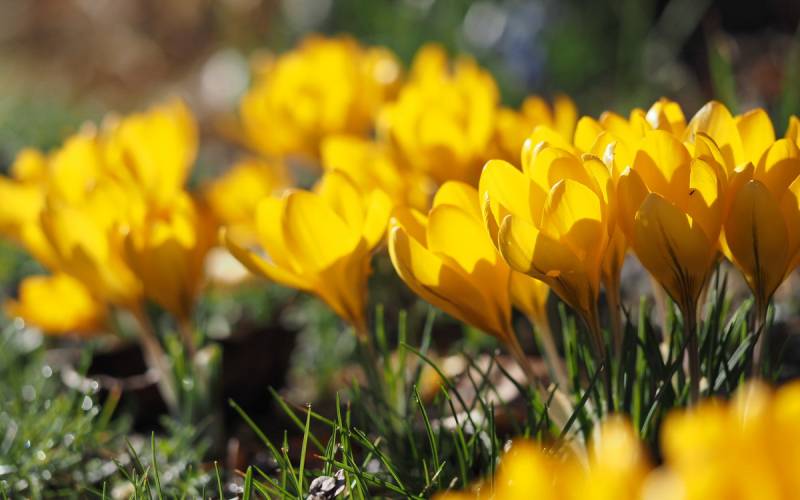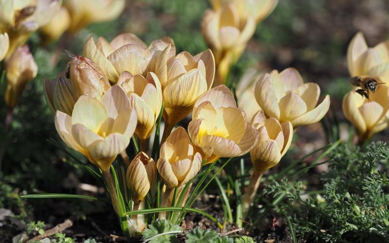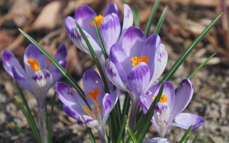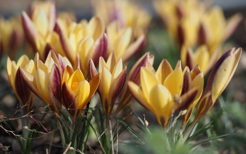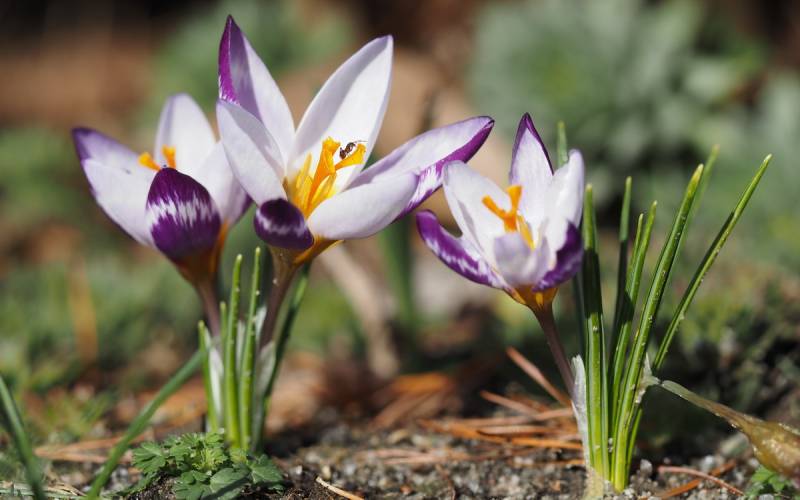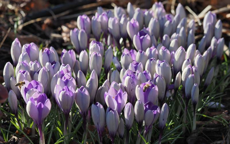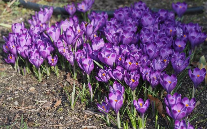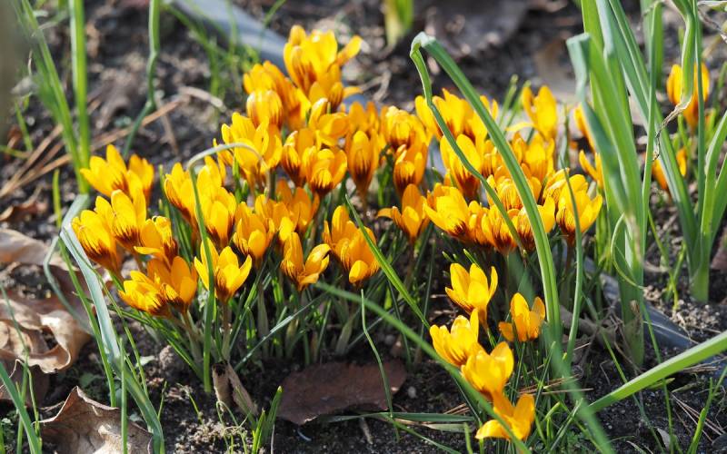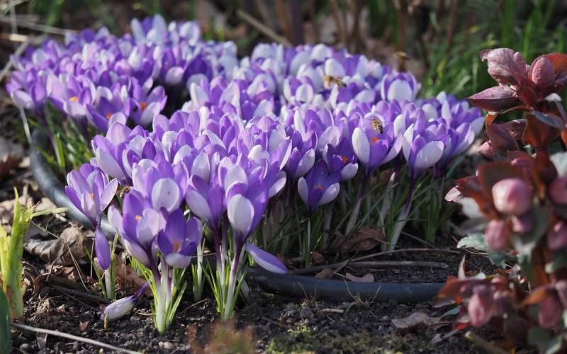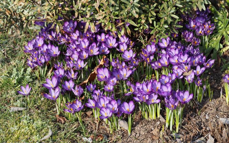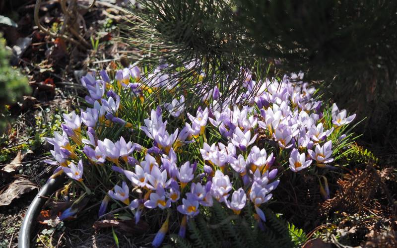 Na szczęście jest też sporo wiosennych kolorów, na rabatach królują głównie krokusy. Niektóre bardzo się rozmnożyły i o dziwo znalazłem nawet trochę kwitnących siewek.