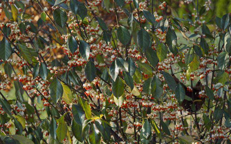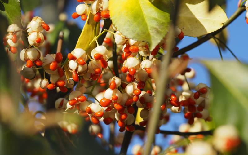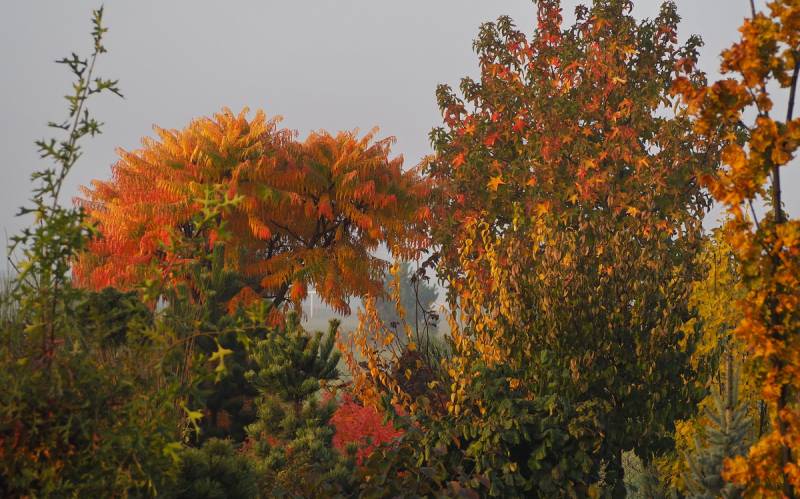Przebarwia się stosunkowo późno ale długo trzyma kolorowe liście. Mam jeszcze siewkę, która posiada bardzo korkową korę ale gdy ona jest już prawie bez liści
