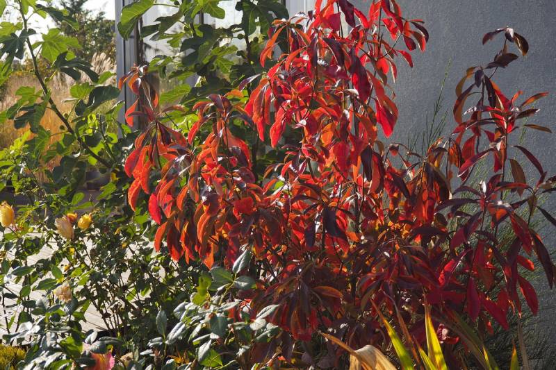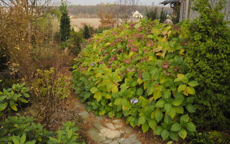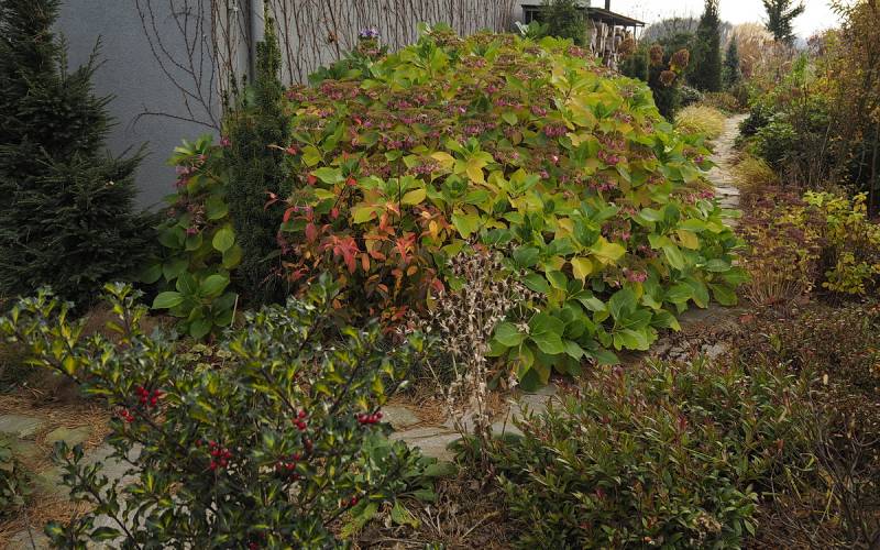 Przebarwiła się ślicznie i długo trzyma te kolorowe liście. Do tego bardzo późno kwitnie więc efekt jesienny jest oszołamiający. Z roku na rok jest większa więc robi coraz lepsze wrażenie.