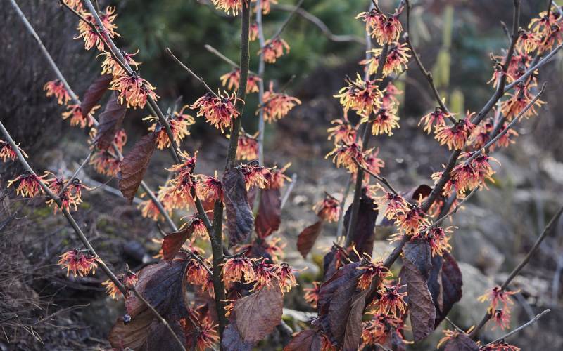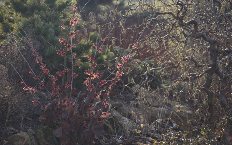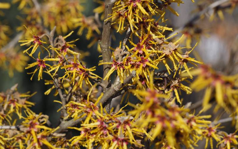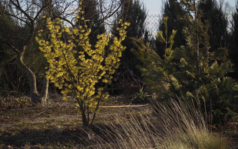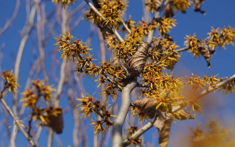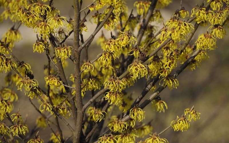 Arnold Promise ze swoimi jaskrawożółtymi płatkami. Jest jak forsycja, niezawodnie przyciągając wzrok. Z daleka jest zresztą często z nią mylony.