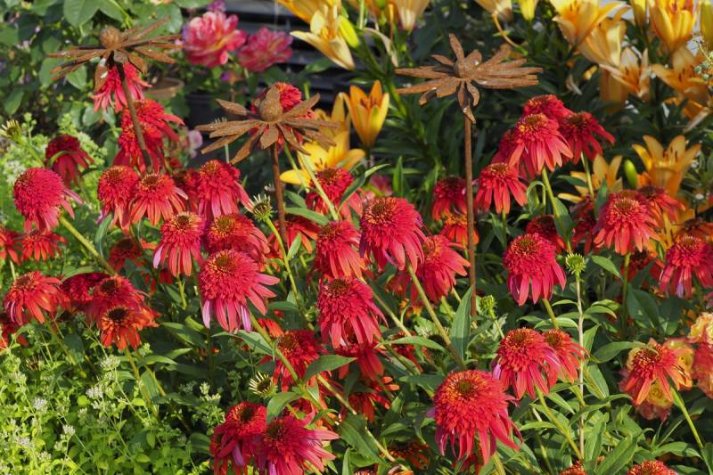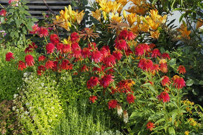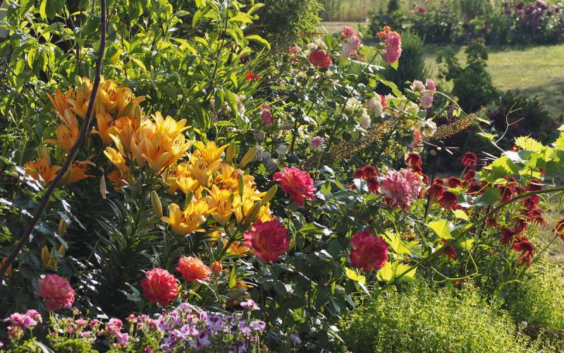 Aniu w ogrodzie raczej ciągle coś kwitnie. Teraz szaleją jeżówki, liliowce i lilie ale za chwilę będą dalie, hibiskusy i ponownie róże. Tak generalnie to jest pstrokacizna przez cały rok