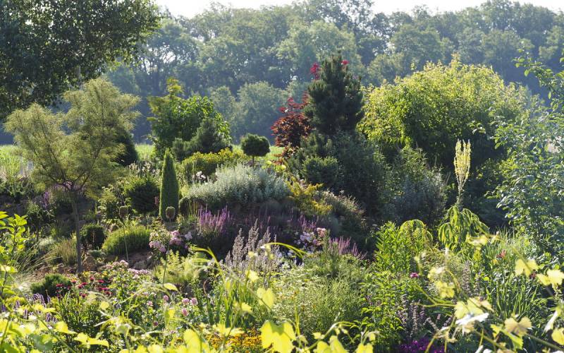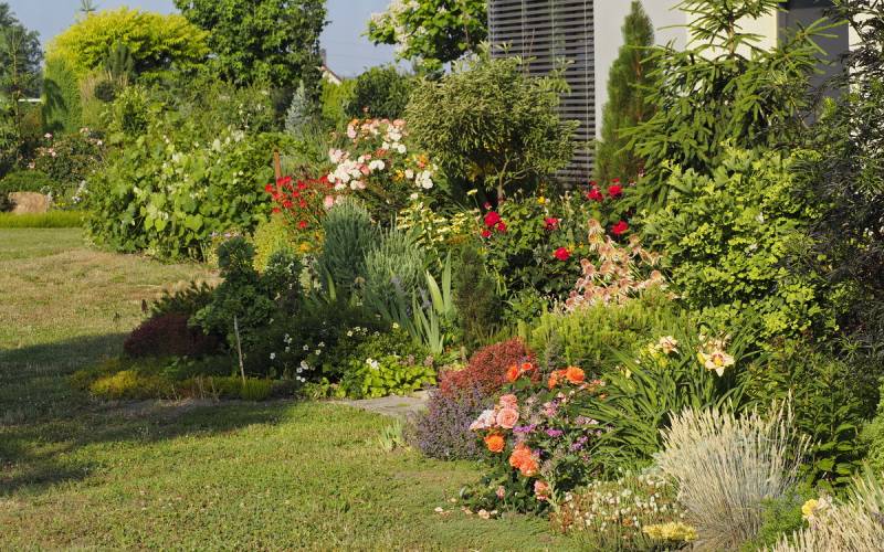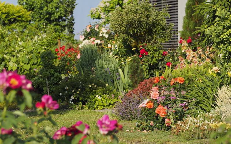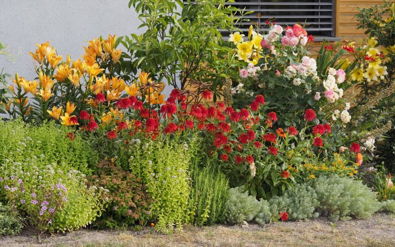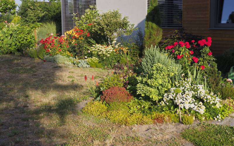 Kamienne ścieżki wśród kwiecistych rabat