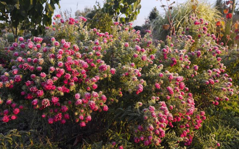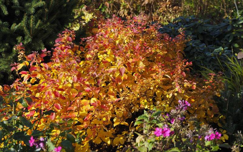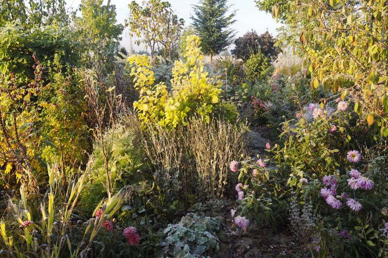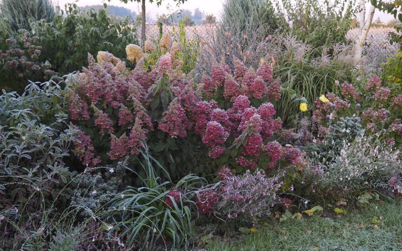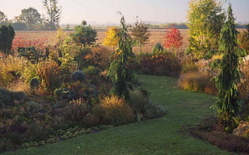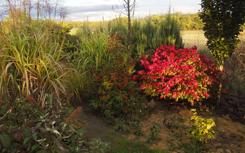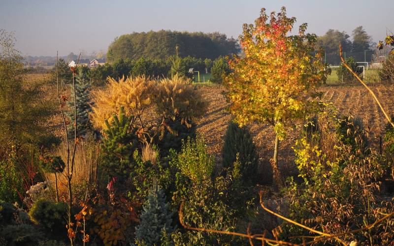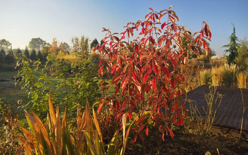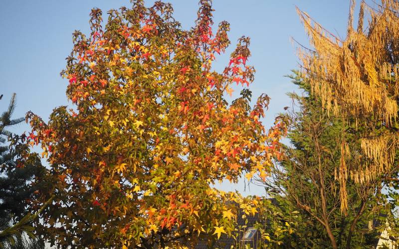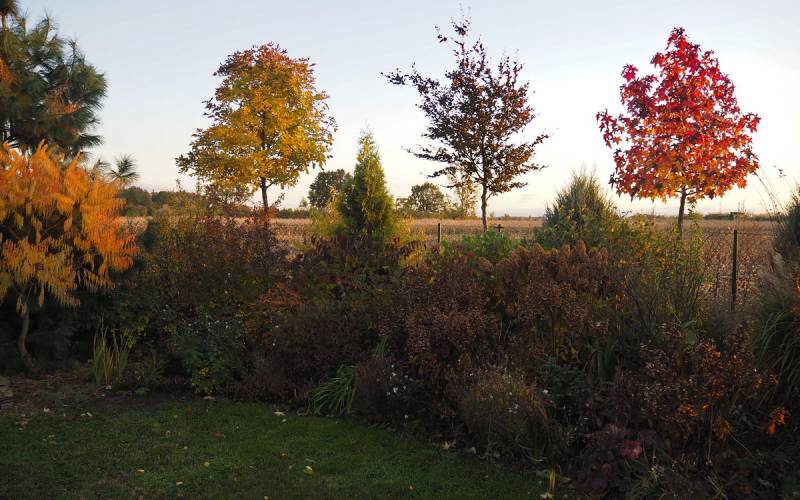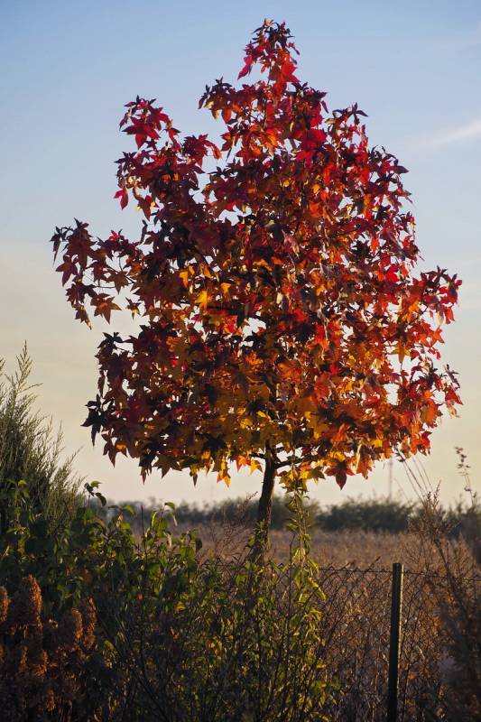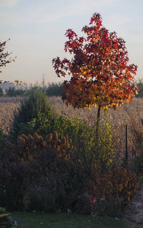 Ambrowce też jednak warto mieć bo przebarwiają się niezawodnie i co też istotne późno. Trzymają kolor gdy w ogrodzie już jest dużo beżów i szarości. Do tego są odporne na suszę i mocne letnie słońce