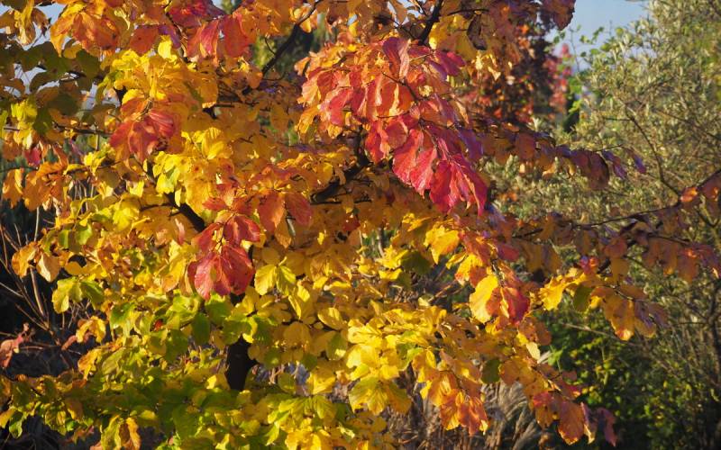 W tym roku pięknie przebarwiła się parocja perska ... ona też długo trzyma liście i okazała się odporna na przymrozki