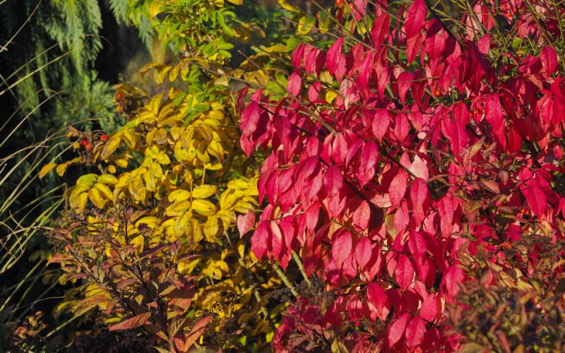Przez cały rok mają ładne żółtozielone liście, a jesienią fantastycznie ( i wcześnie) się przebarwiają od różu przez ciepłe czerwienie do głębokiego bordo :popatrz_tu 'Rainbow' i 'Cherokee Sunset'