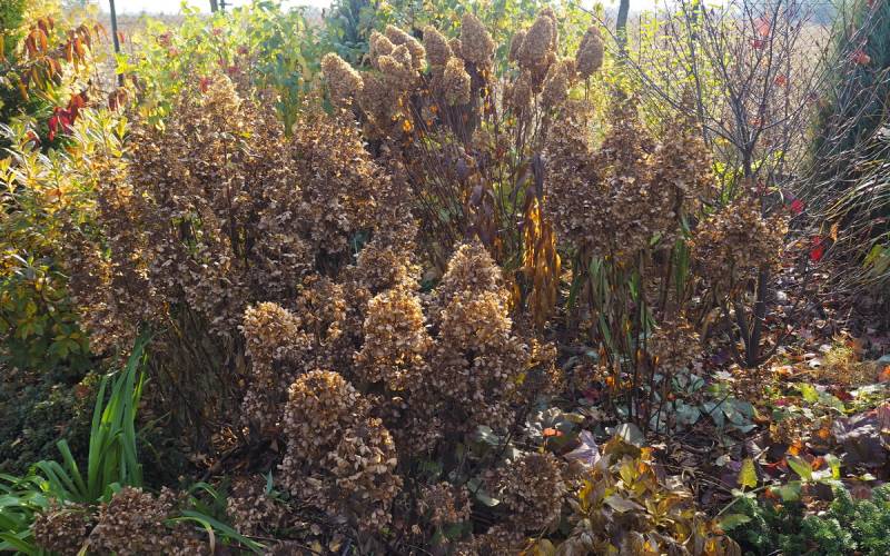 Moje kloniki prawie wszystkie zmrożone i hortensje brązowe - nawet do wazonu nie zdążyłam ciachnąć porządnie :mur No ale takie uroki naszego klimatu, dobrze, że trawy teraz zdobią...