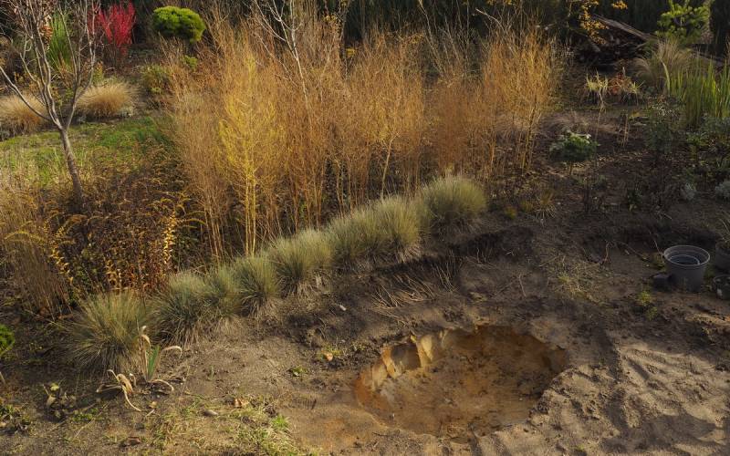 eksmitowałem gigantycznego już miskanta Variegatus (bo kolidował z planowanym ogrodzeniem) i ogólnie zrobiłem trochę porządku. Wiosną będzie to jednak trzeba dokończyć;
