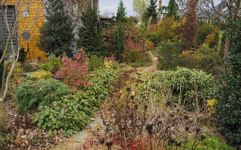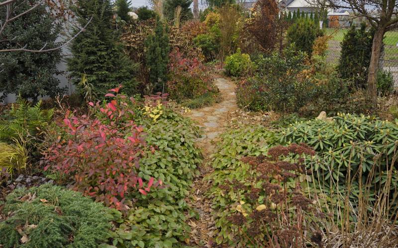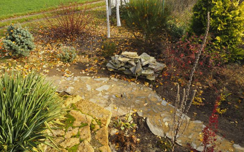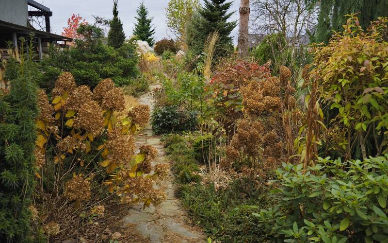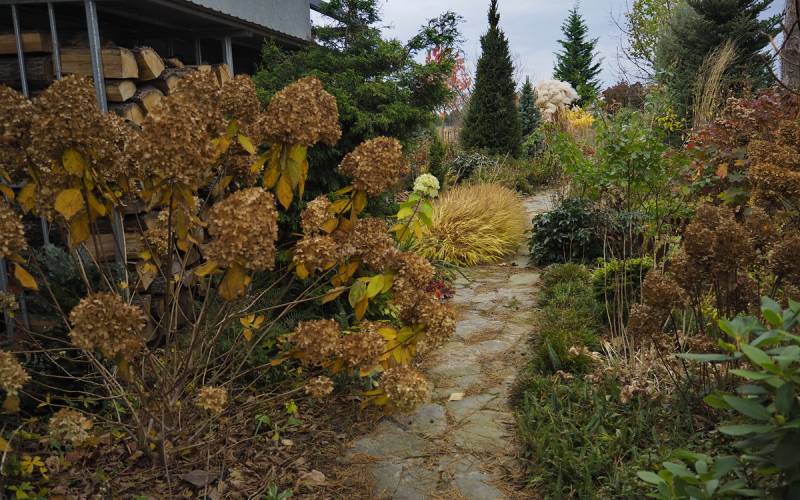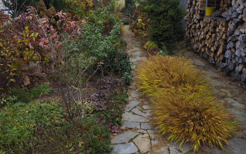 Generalnie nie czyszczę ogrodu jesienią ale w przedogródku musiałem wkroczyć by dać mu trochę powietrza. Poprzycinałem, róże których monstrualne krzaki zupełnie zarosły ścieżki,