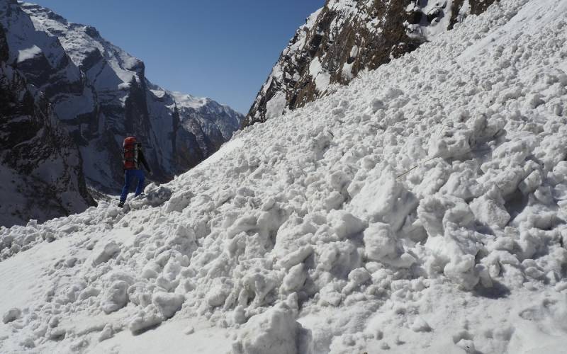 nie widząc żadnego niebezpieczeństwa, dwa dni później gdy wracaliśmy była cała zasypana lawiną. Takich miejsc było zresztą na trasie więcej,