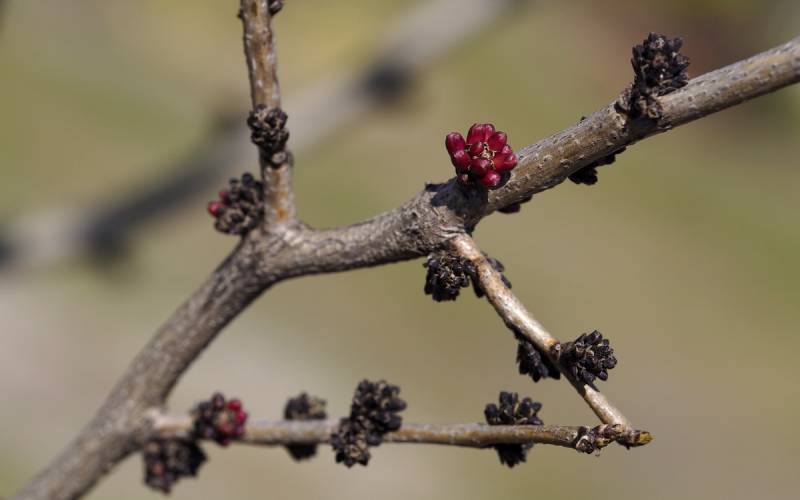 wygląda też na to że dereni jadalnych raczej nie będzie. Są aktualnie w pełni kwitnienia, a większość kwiatów jest już czarna.