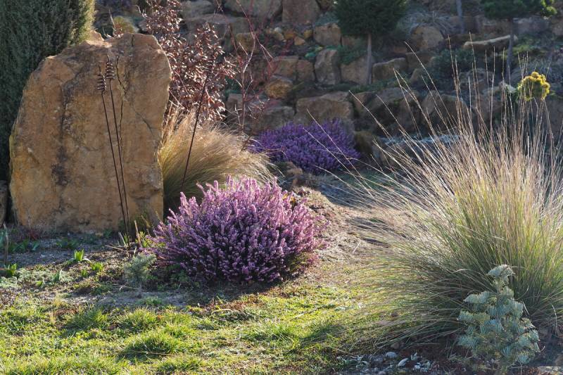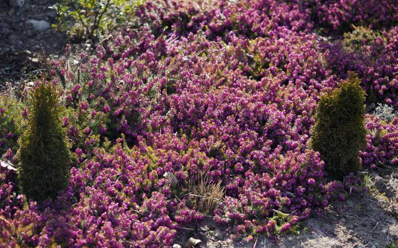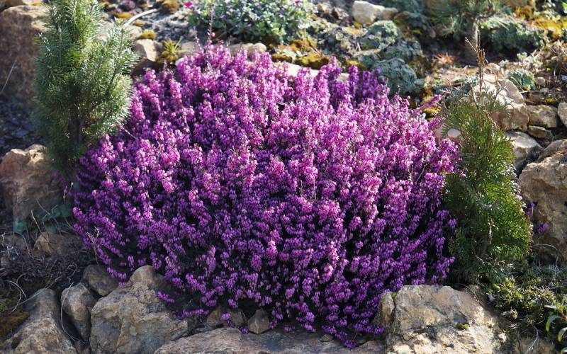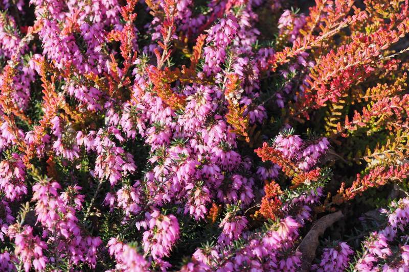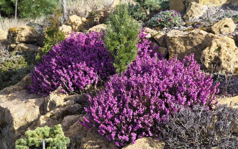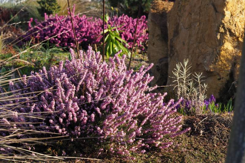 Wrzośce kochają słońce i są odporne na suszę, a jedyna pielęgnacja jakiej wymagają to przycięcie od czasu do czasu.