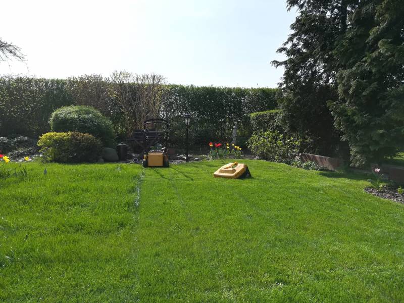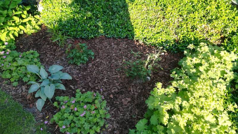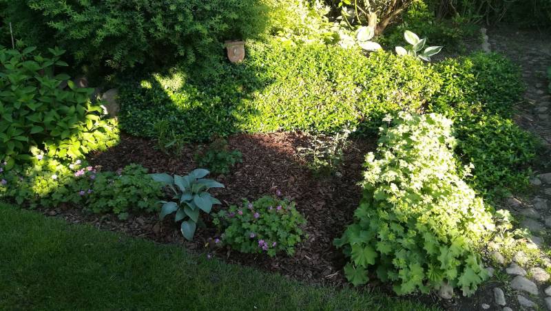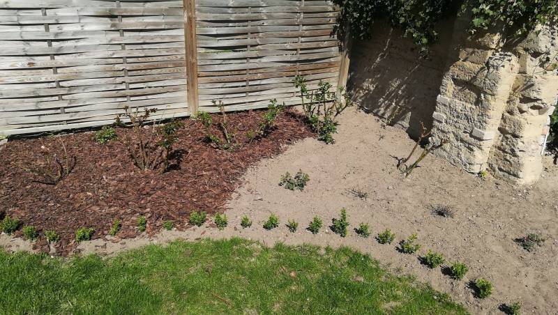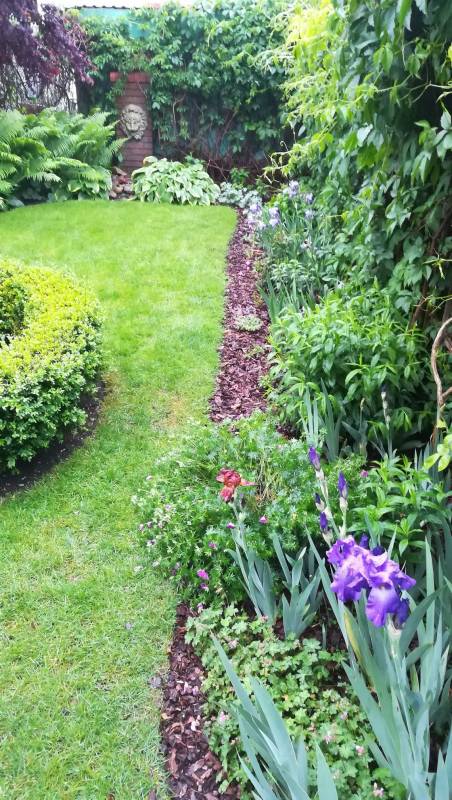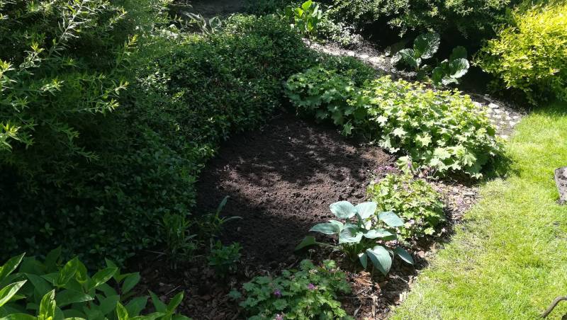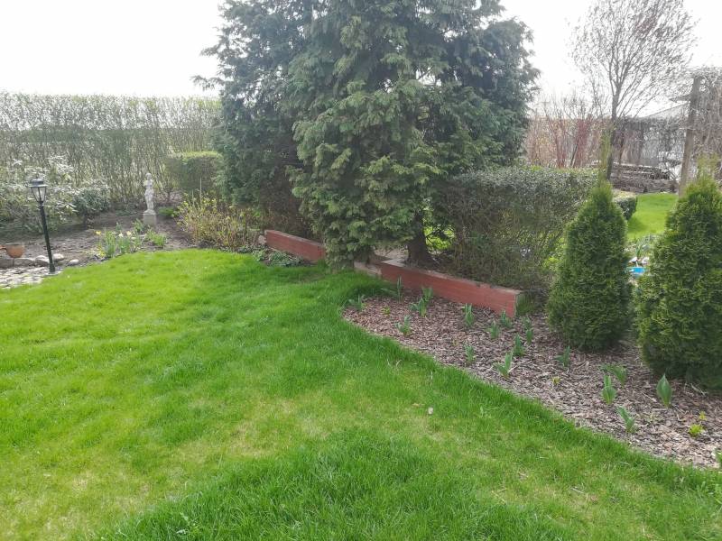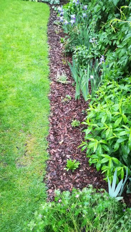 Wczoraj zdecydowałem się na wyściółkowanie nowej rabaty różanej korą. Wiem, że to dyskusyjne. Niestety obecnie rabata jest zbyt odsłonięta- nie ma jeszcze bylin uzupełniających. Pielenie jest koszmarem. Tak samo będzie z podlewaniem.