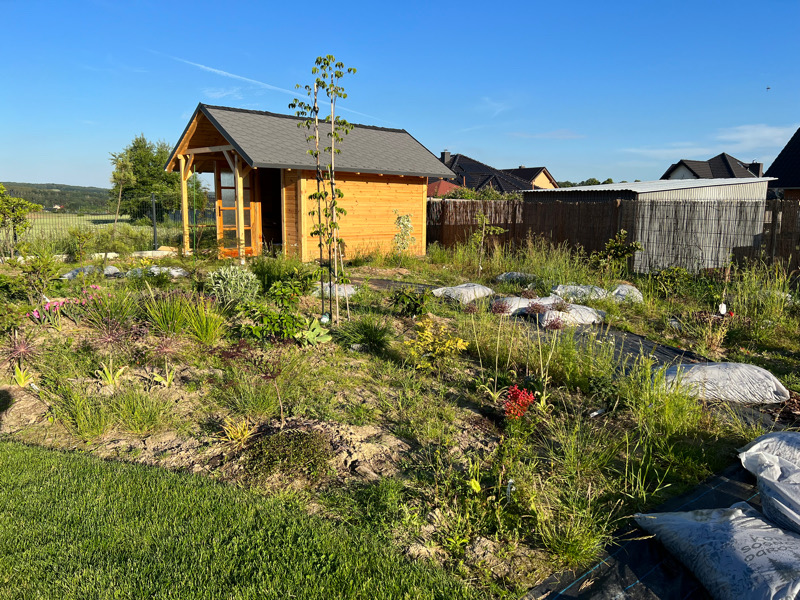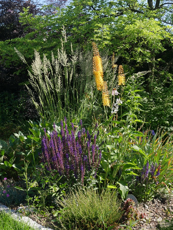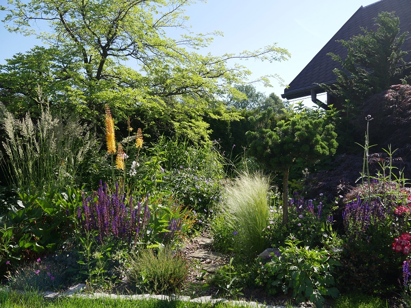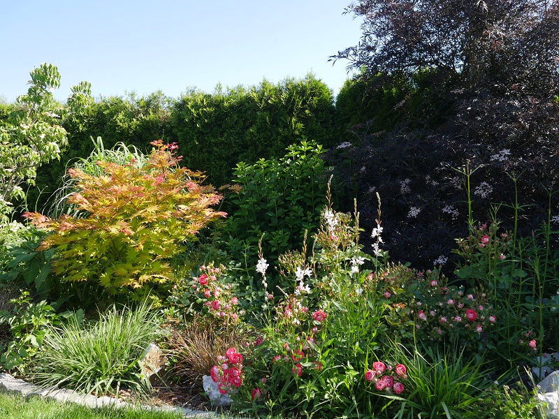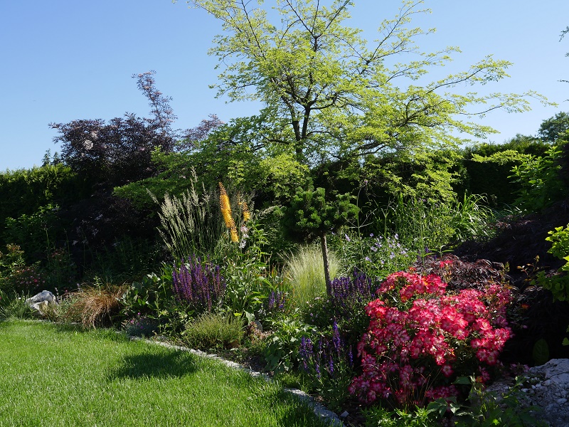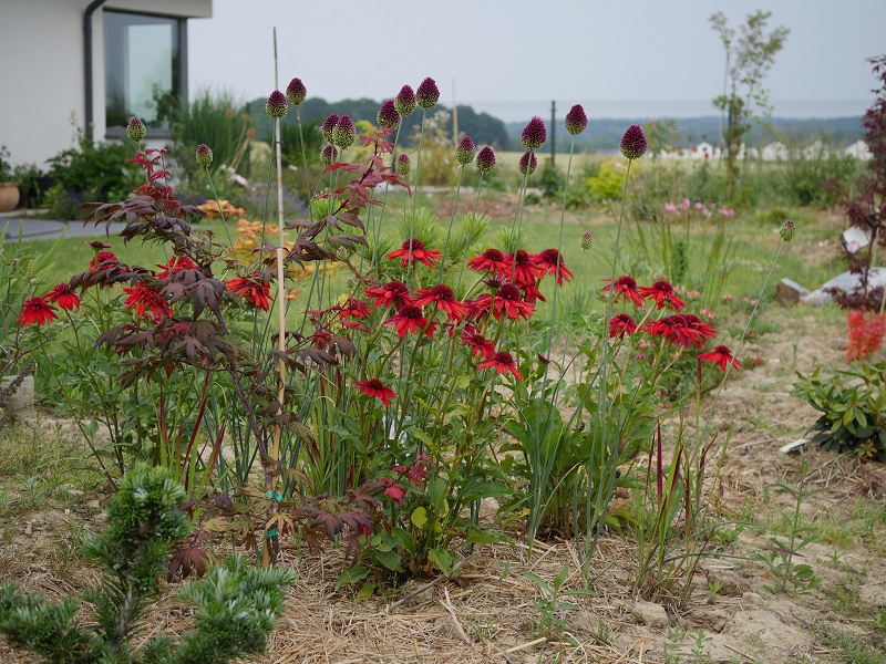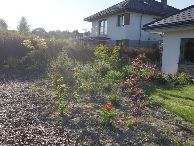 Kolorowo sie zrobiło... bardzo, zaczynają dalie i liliowce, lilie, choć kilka roślin spalonych słońcem, wręcz ugotowanych. Dwa derenie zeszłoroczny Peve Sammy i tegoroczny Helena, nie wiem czy dadzą radę bo, wyglądają koszmarnie.