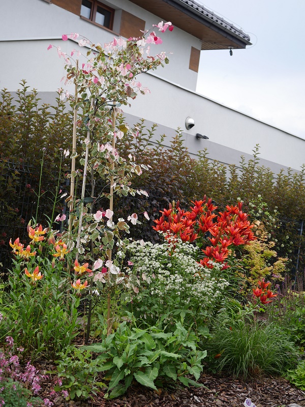 I tu w towarzystwie pomarańczowej lili NN i judaszowaca Carolina SweetHeart