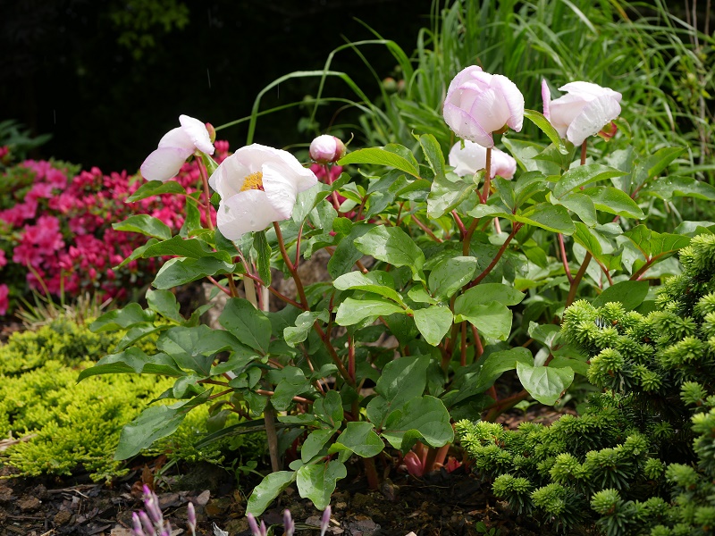 Po prawej na pniu tez nie pamietam na już... A centralnie klon Jordan- rośnie jak na drożdżach...