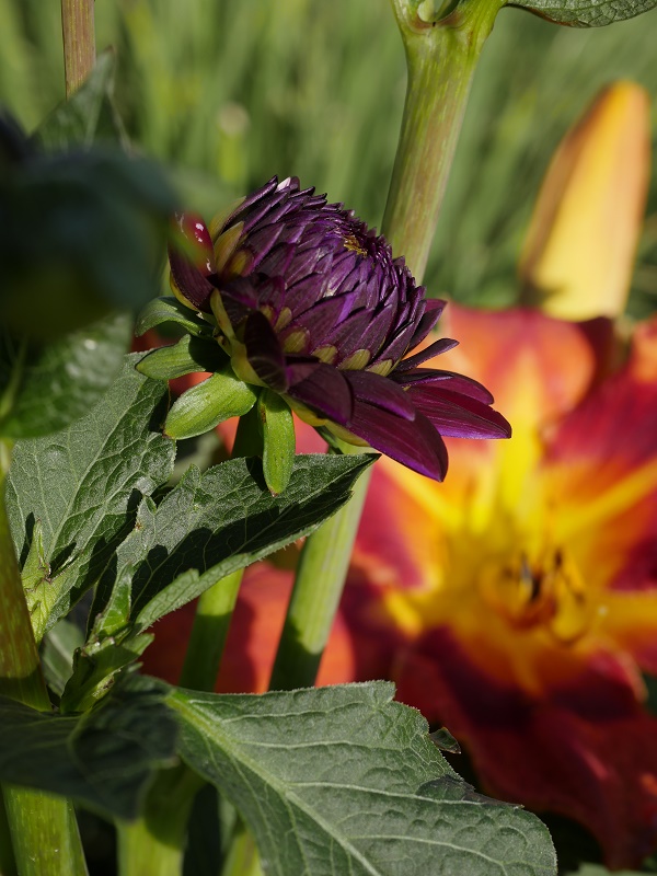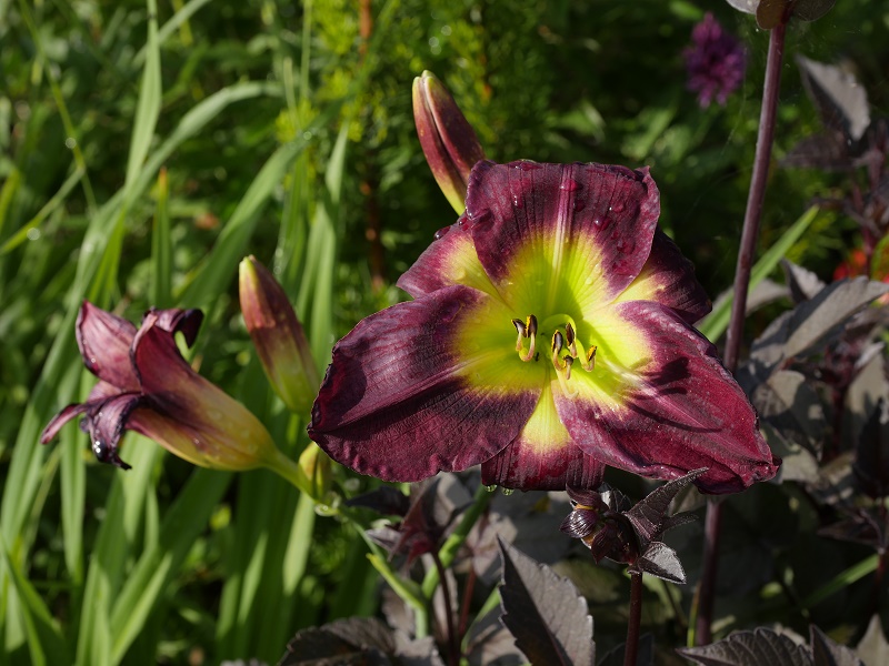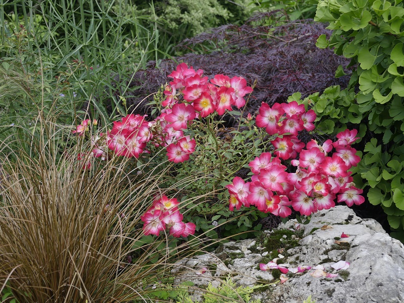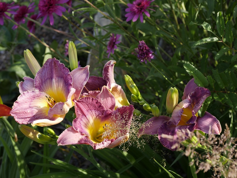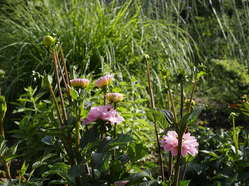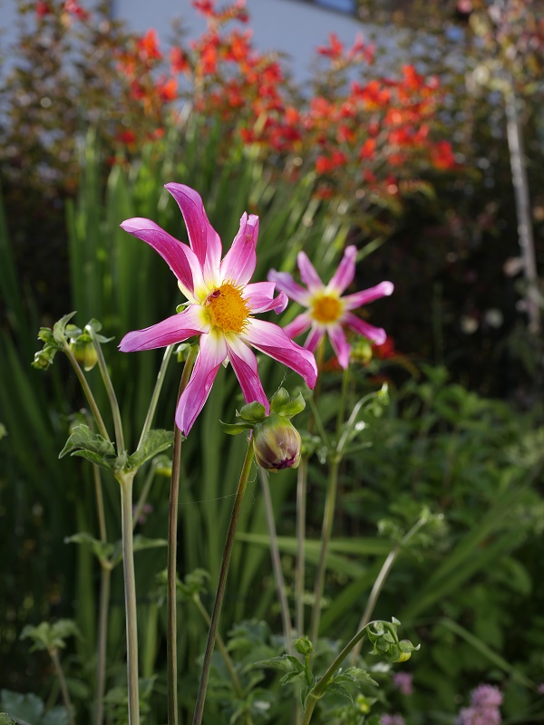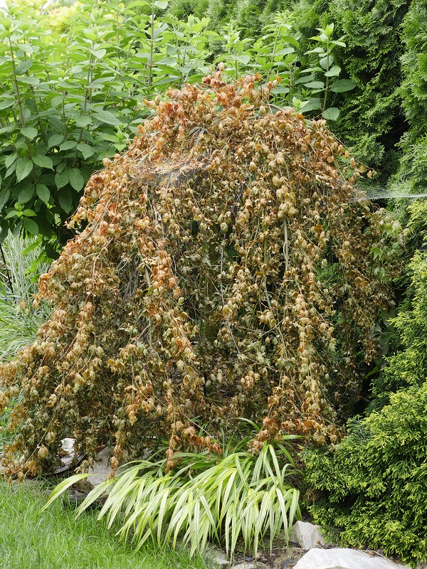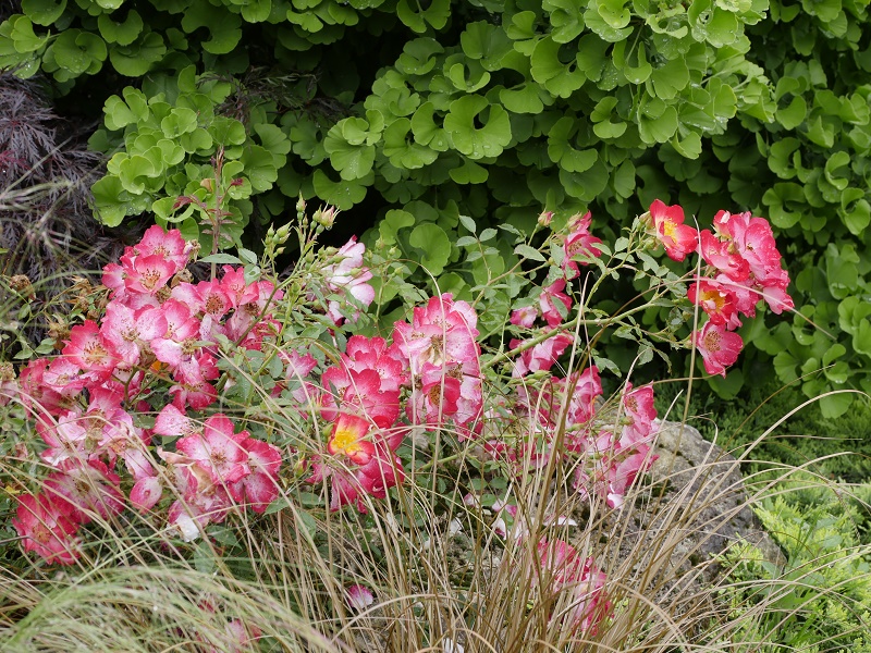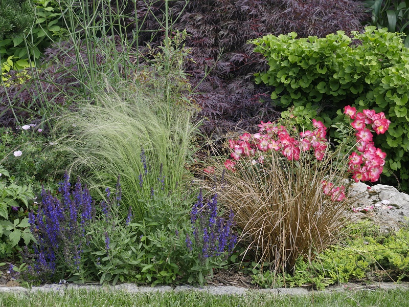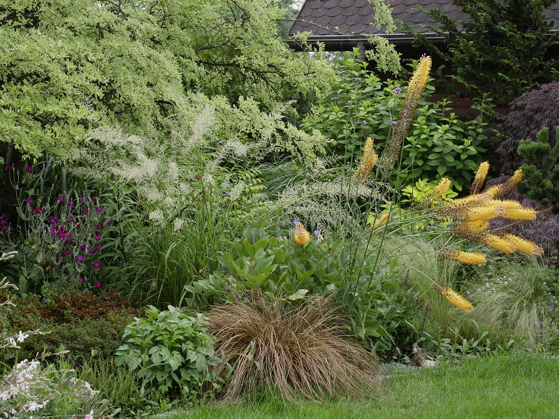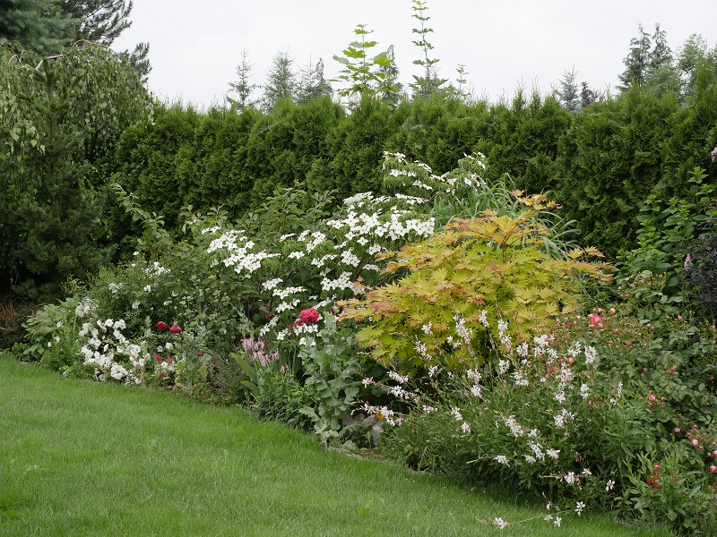 Klon Red Feathers lekko zarósł rdestem - nie zdawałam sobie sprawy, że z niego taki potwór, ale kolorystycznie ładnie do siebie pasują...
