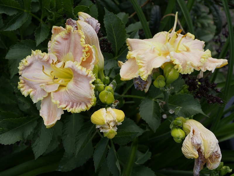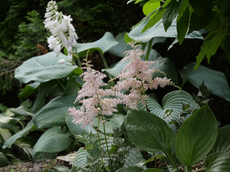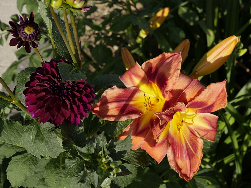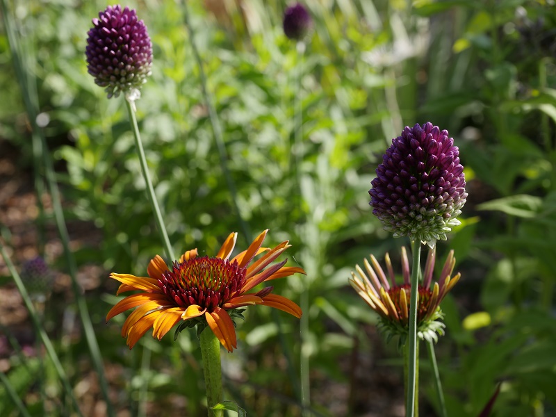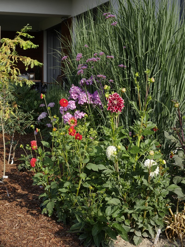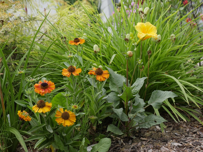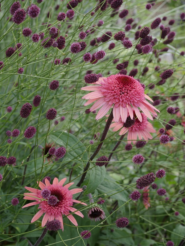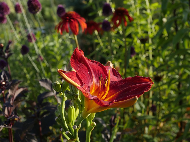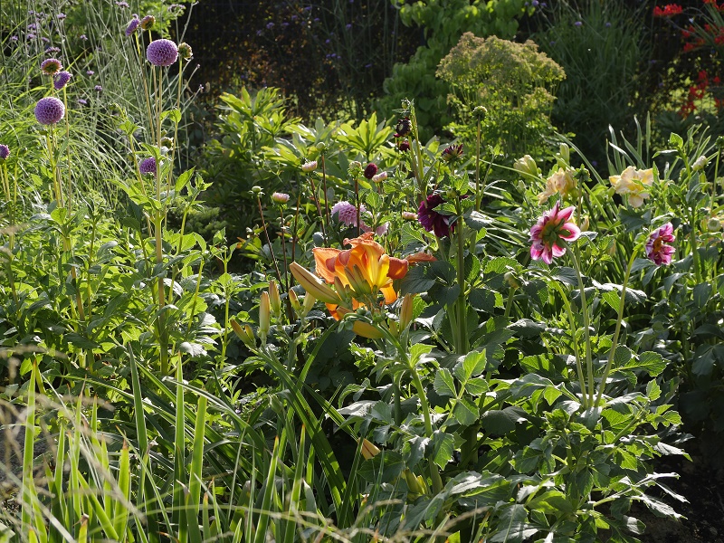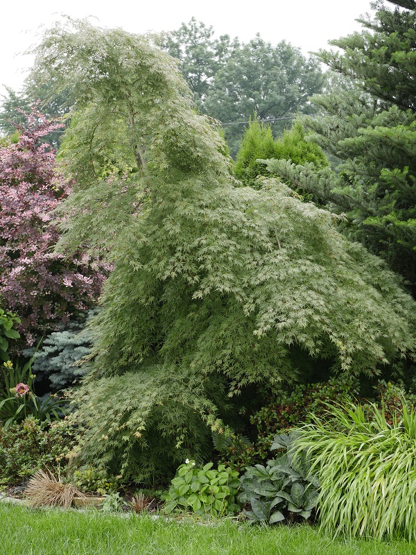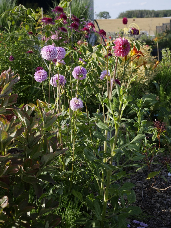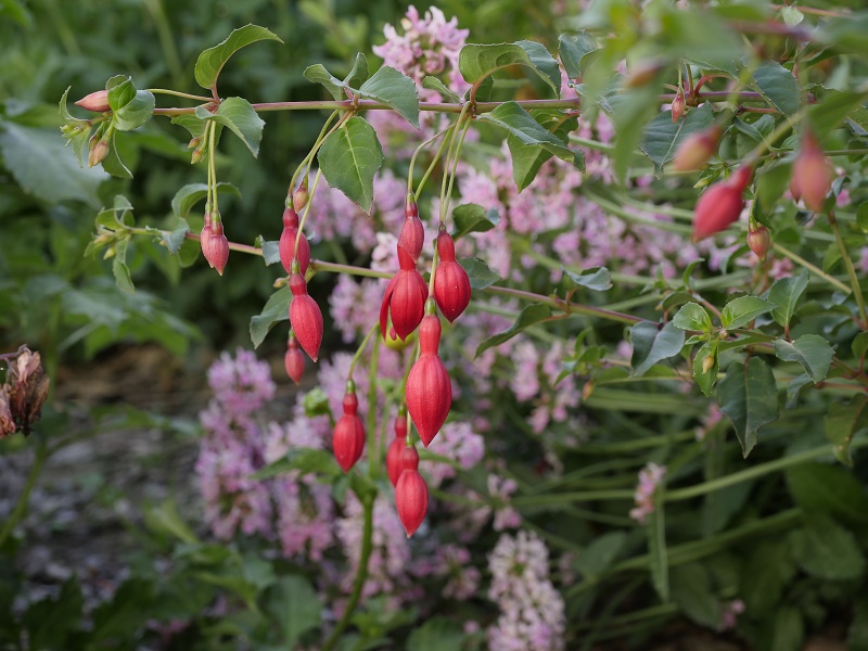 Klon Red Feathers lekko zarósł rdestem - nie zdawałam sobie sprawy, że z niego taki potwór, ale kolorystycznie ładnie do siebie pasują...