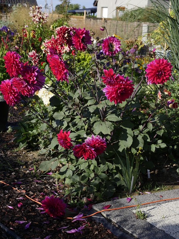Miłko dalie u mnie maja raj ... słońce.. baardzo dużo słonka... te , które niefortunie posadzilam w wiekszym cieniu sa marniutkie...i chyba moja glina wybełtana z kupnym kompostem im służy... nie podsypałam świeżego kompostu zeszłorocznym karpom i te trochę bidne...ale dostały już nawóz pomidorowy i zaczynają sie zbierać... martwię sie tylko gdzie ja będę sadzić to towarzystwo jak sie wszystko mi porozrasta... ale jak Ty dajesz radę to i u mnie będzie się musiało zmieścić