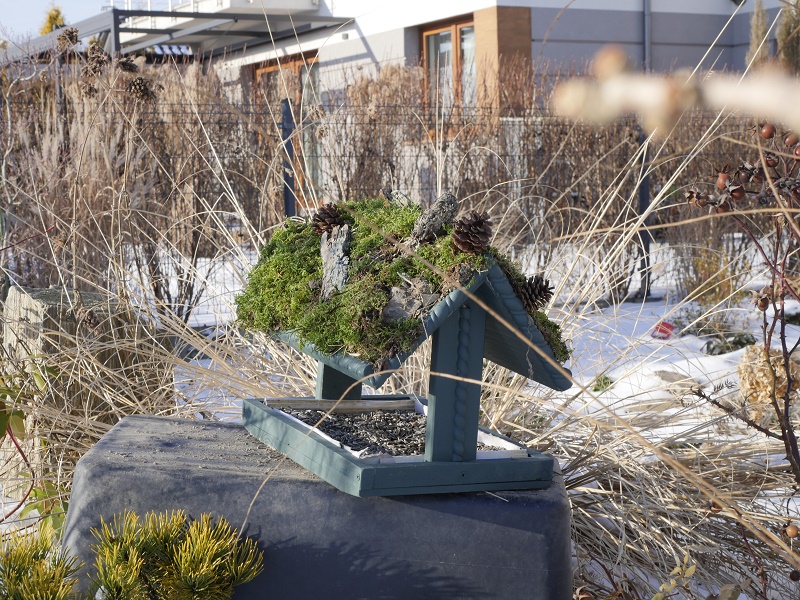 Wiesiu Plan jest taki, żeby miedzy ten mech powtykać jeszcze jakieś rojniki- nawet jak mech przeschnie to rojniki będa sie zielenić... Tylko do mojego karmnika jeszcze ani pół ptaszka nie przyleciało... chyba za bardzo zakamuflowany...