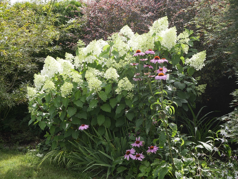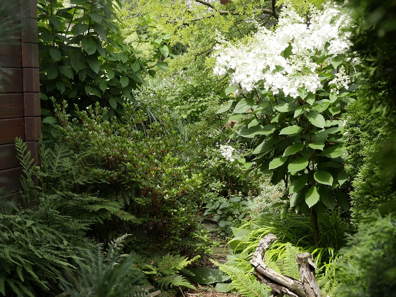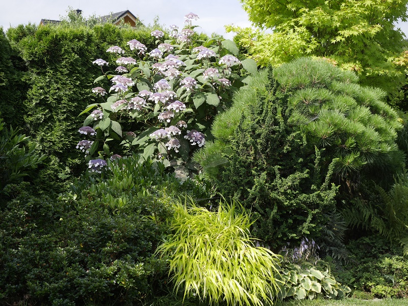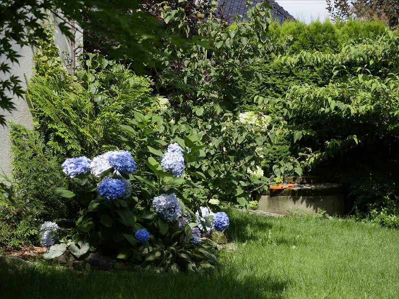 generalnie na zielono teraz... wiosenne szaleństwo kolorów minęło... rozwijają się hortensje i kwitną jeżówki...