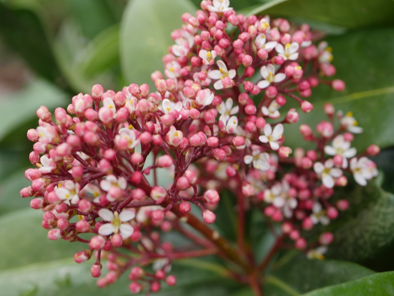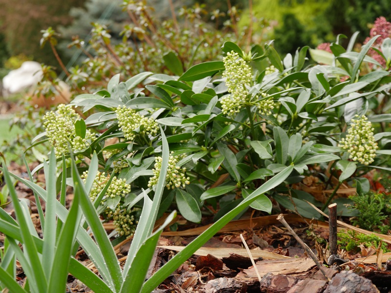 Przymierzam się do skimmii, ale podchodze, jak do jeża. Ostatnia zima była łagodna, ale wiem, jak reaguja na mocniejsze moje zimozielone. Zastanawiam się, czy nadawałyby się do upray w donicach, jako rosliny tarasowe, zimą przechowywane w chłodnym pomieszczeniu. Obserwując, znalazłam kilka dobrze osłonietych miejsc w ogrodzie, ale rezerwuje je dla paprot na granicy naszej strefy klimatycznej.