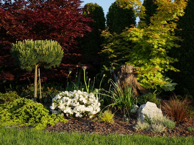 Ach, ta kompozycja z patriotycznie kwitnącymi azalkami przecudna! U mnie większość kwiatów kwasolubów podziękowała po kilku dniach tropików.