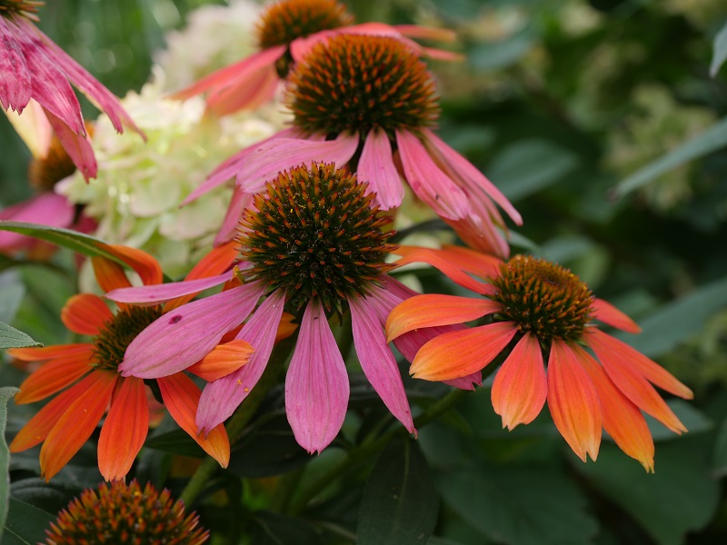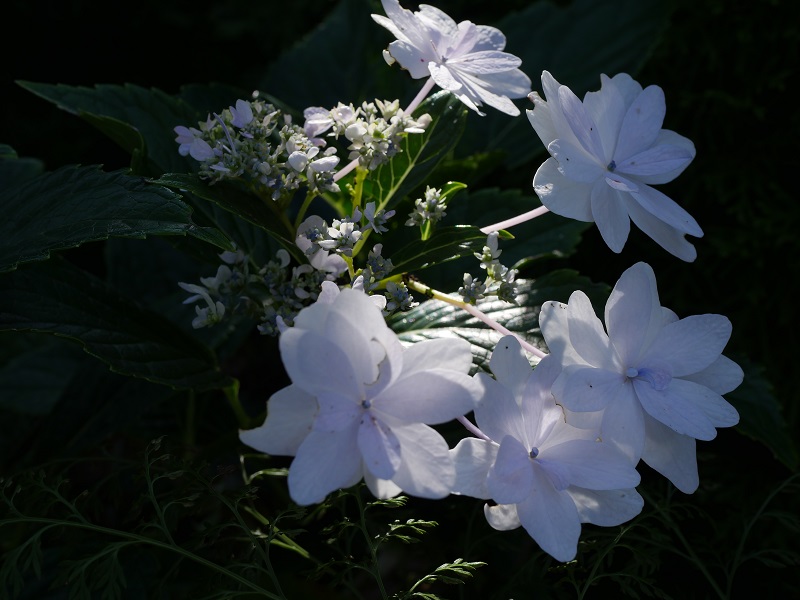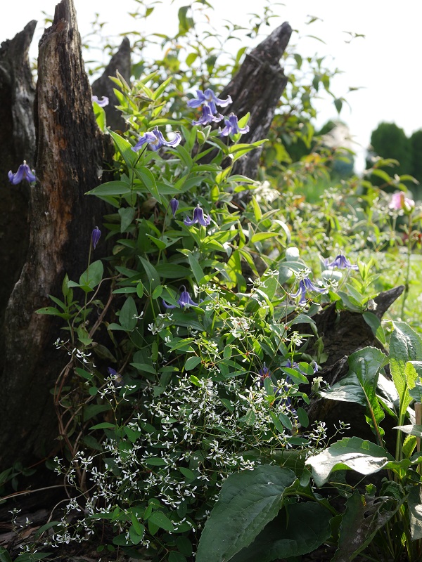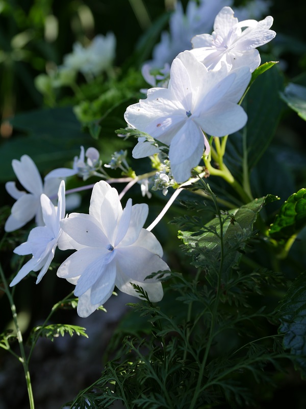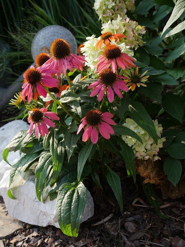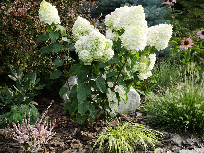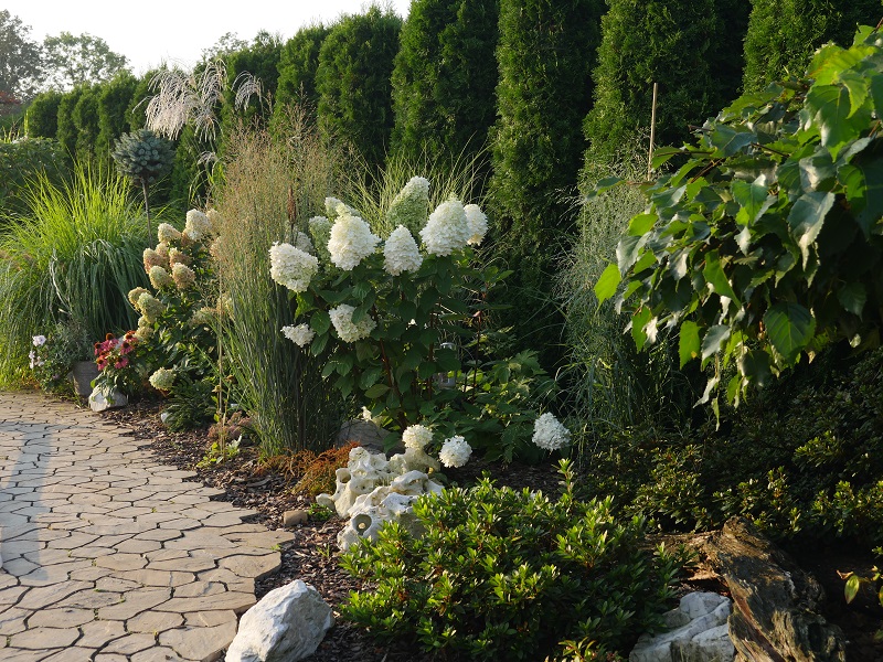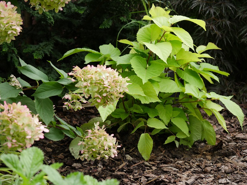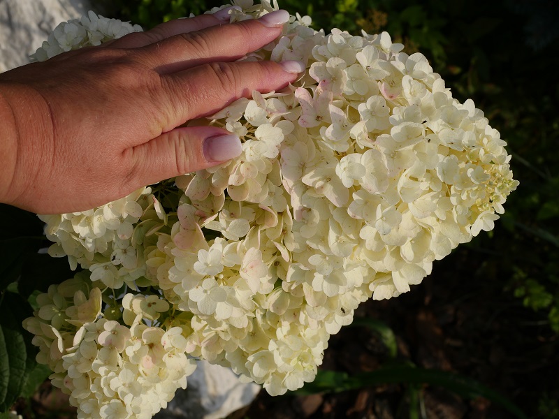 A największą niespodziankę zrobiła mi hortensja Hanabi. Wsadziłam ją do balii i po przekwitnięciu, obcięłam jej część brzydkich kwiatostanów. Zdziwienie moje było wielkie, jak z tych podciętych pędów wypuściła nowe przyrosty i kwitnie w najlepsze. Pedy ze starymi kwiatkami stoją jak stały.