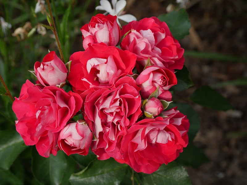 Róża Rosige Landdrostei - mała jest ale ciągle z nowymi kwiatkami