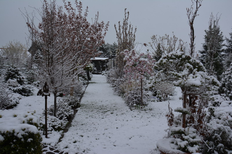 Wiosna po chwilowym odwrocie powróciła z pełną siłą i mam nadzieję, że rozgości się na dłużej ;) Ze strat to chyba tylko jeden klon palmowy przymroziło i niestety słabo rokuje. No i kwiaty magnolii uszkodzone. Nie znalazłem jednego bez brązowych plam, ale kwitną :)