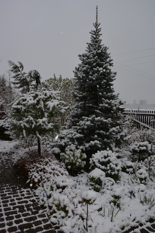 Hanutkowo pod śniegiem. Nawet nie chce mi się wychodzić. Włączam podlewanie co noc, szmat na krzakach więcej, niż w środku zimy, czekam ...