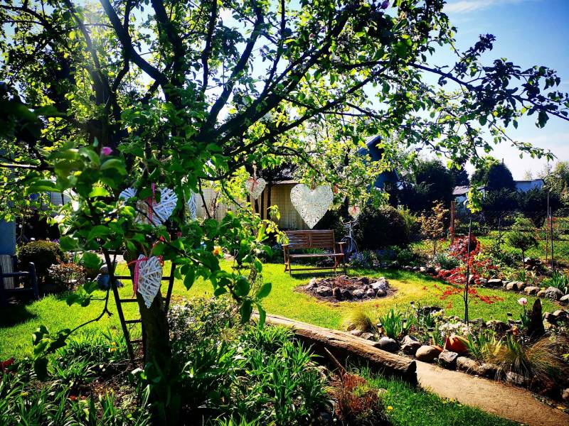 Tym sposobem, mam wszystko, lub prawie wszystko, a to kwitnące, bujnie i kolorowo lilie, liliowce, kolorowe liście żurawek, hosty co sezon w innym typie, trochę mchu i paproci