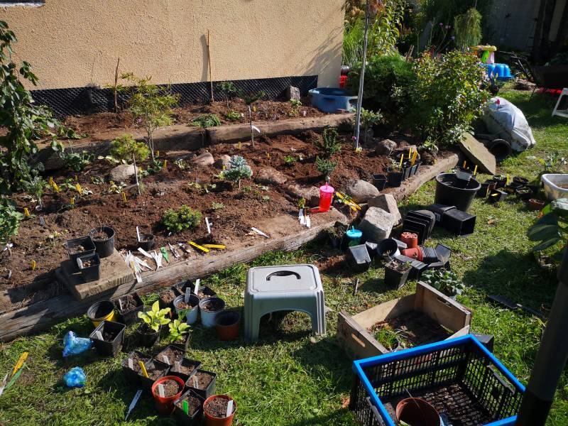 Chciałam rabatę podwyższoną wyspać zwirem, ale się wstrzymałam, muszę kupić drobną korę, mam wrażenie, że ta ziemia jakąś taką sucha.. Na żwir przyjdzie czas. Więcej grzechów nie pamiętam